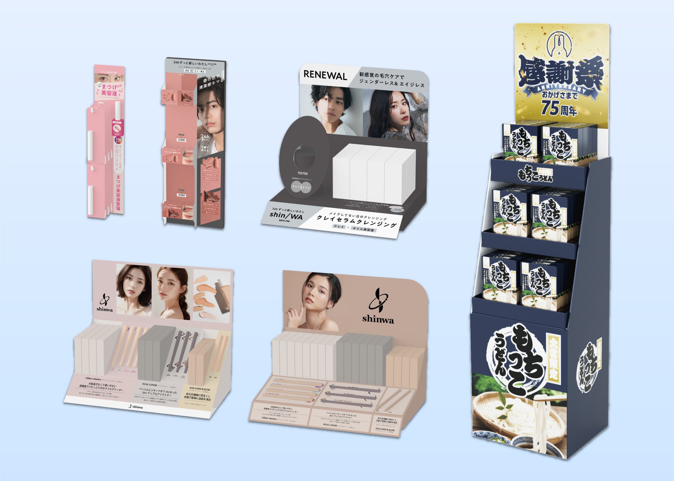 など、売場の課題や狙いに応じた什器づくりが可能です。